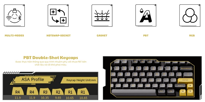 AKKO 5098B Black Gold hỗ trợ tính năng Hotswap, cho phép bạn dễ dàng thay đổi switch mà không cần hàn lại. Điều này giúp người dùng tự do tùy biến trải nghiệm gõ phím theo ý thích và tối ưu hóa hiệu năng cho các nhu cầu khác nhau.