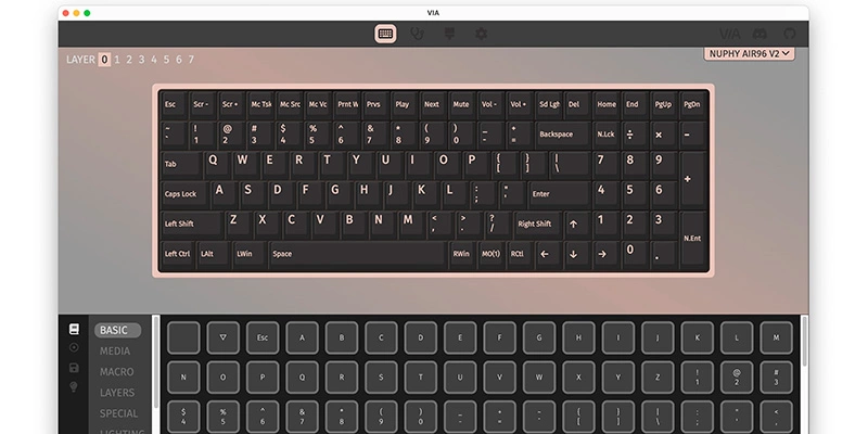 Bàn phím cơ không dây Nuphy Air96 V2 Basalt Black RGB Hotswap (Nuphy Sw) được trang bị hệ thống đèn LED RGB với nhiều hiệu ứng ánh sáng đẹp mắt. Bạn có thể tùy chỉnh hiệu ứng ánh sáng thông qua phần mềm Nuphy Console, tạo phong cách riêng cho bàn phím của mình.
