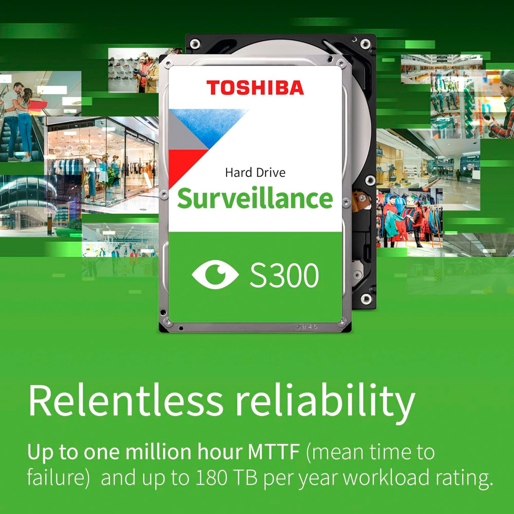 Hệ thống giám sát không bao giờ ngủ, và ổ cứng S300 cũng vậy. Sản phẩm được chế tạo với các linh kiện cao cấp, hỗ trợ khả năng ghi chép dữ liệu cường độ cao và hoạt động bền bỉ suốt 24 giờ mỗi ngày, 7 ngày mỗi tuần. Công nghệ độc quyền từ Toshiba giúp thiết bị chịu được môi trường nhiệt độ khắc nghiệt thường thấy bên trong các thùng máy đầu ghi hình xếp chồng chật hẹp, mang lại sự an tâm tuyệt đối cho khối tài sản và dữ liệu an ninh của bạn.