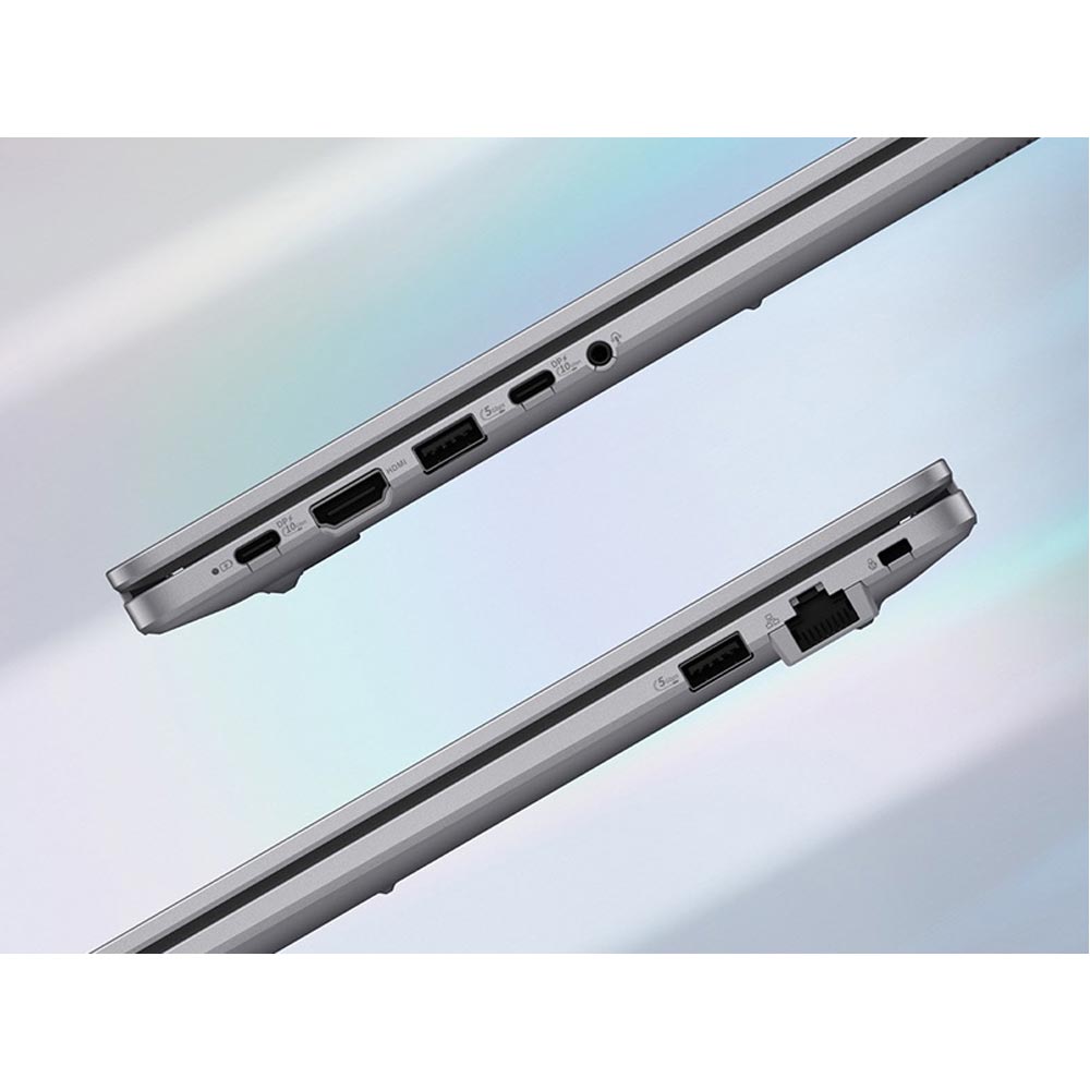 Asus trang bị cho Laptop Asus ExpertBook P1503CVA-C5H08-50W hệ thống cổng kết nối phong phú, đáp ứng tốt nhu cầu làm việc văn phòng. Máy có 2 cổng USB Type-A, 2 cổng USB Type-C hỗ trợ xuất hình và sạc, cổng HDMI 1.4 hỗ trợ độ phân giải lên tới 4K 30Hz, cổng LAN RJ45 Gigabit cho kết nối mạng dây ổn định và jack tai nghe 3.5mm. Nhờ đó, người dùng dễ dàng kết nối với máy chiếu, màn hình ngoài, thiết bị lưu trữ và hạ tầng mạng nội bộ.