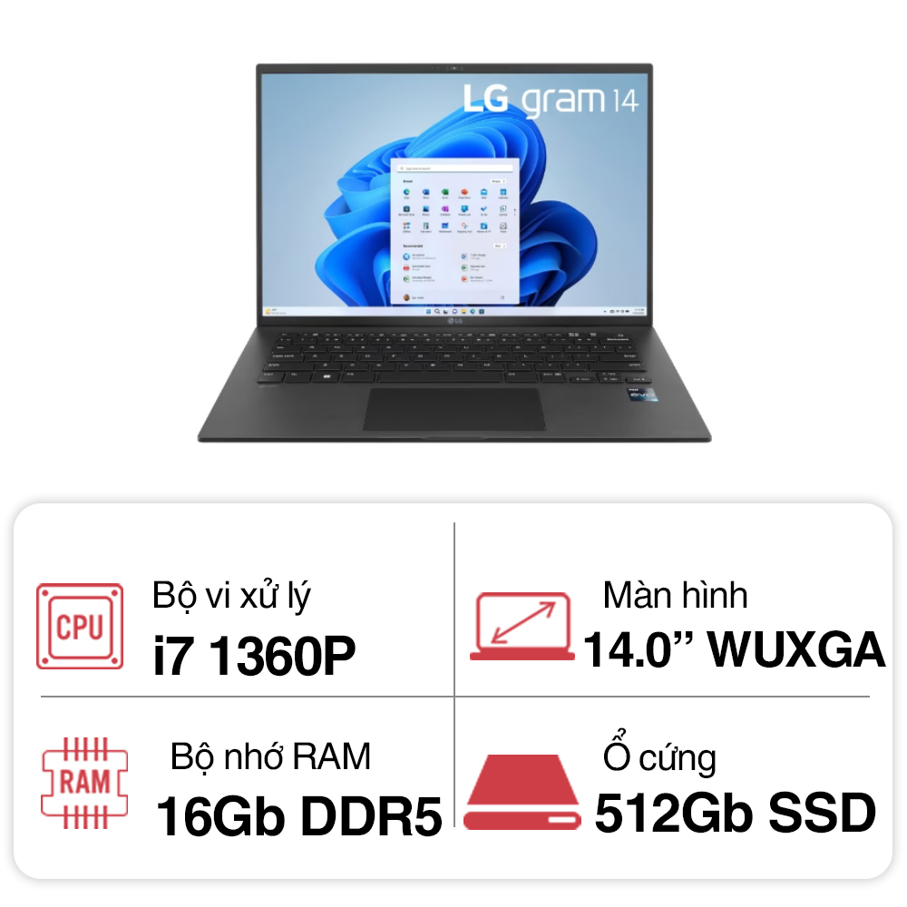 Laptop LG Gram 2023 14Z90R-G.AH75A5 (Core i7 1360P/ 16GB/ 512GB SSD/ Intel Iris Xe Graphics/ 14.0inch WUXGA/ Windows 11 Home/ Black) đang được bày bán với giá siêu ưu đãi cùng thời hạn bảo hành chính hãng 12 tháng tại Máy Tính Trường Thịnh – doanh nghiệp hàng đầu chuyên cung cấp giải pháp công nghệ trong lĩnh vực máy tính, máy tính xách tay, điện thoại, thiết bị văn phòng và phần mềm, máy tính đồng bộ, thiết bị siêu thị, thiết bị hội nghị và phòng học, camera,…