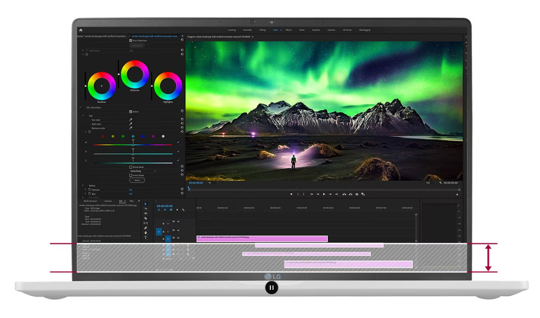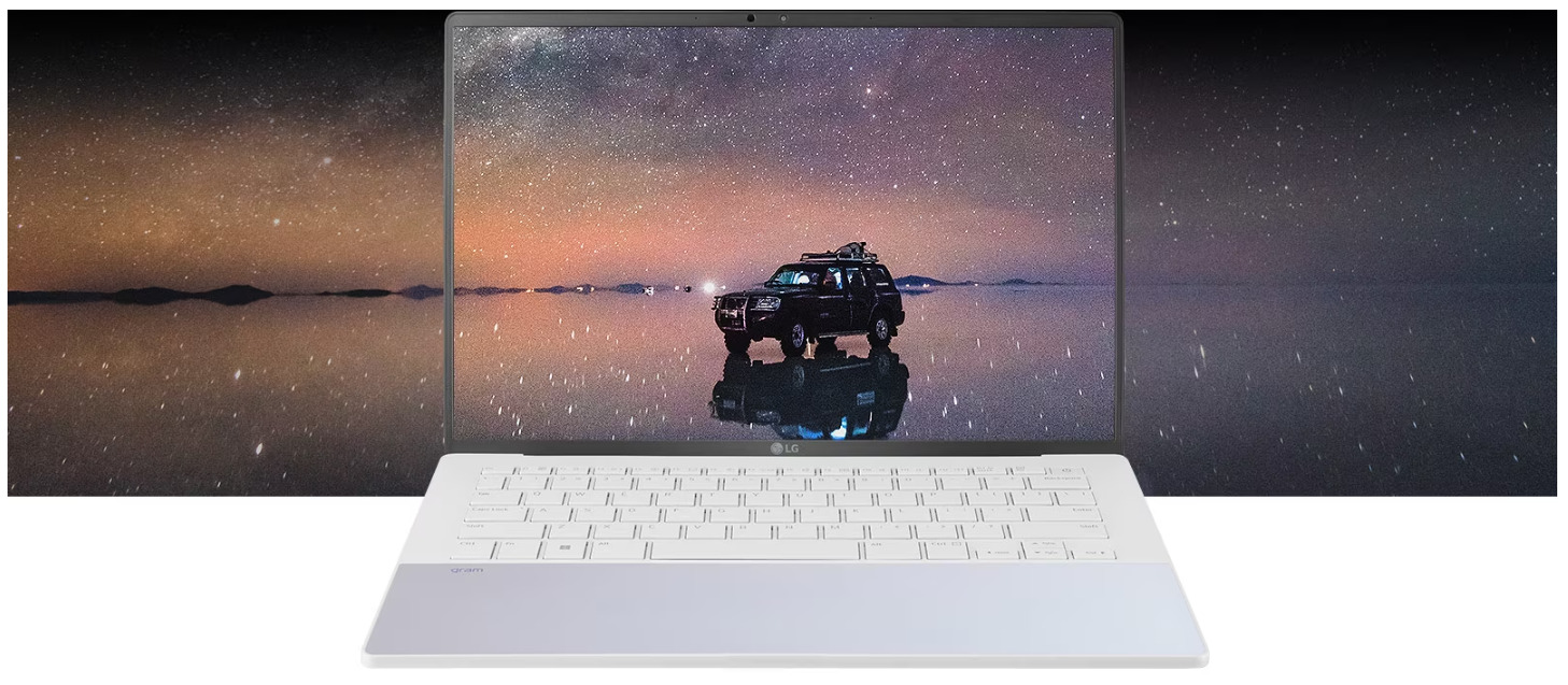 Màn hình WQXGA+ tỷ lệ 16:10 trên laptop LG Gram 2023 Ultra Slim không chỉ mang tới hình ảnh chất lượng cao mà còn giúp bạn xem được nhiều hơn trong chỉ một màn hình hiển thị. Và với tấm nền có độ phản xạ thấp kiểm soát được độ sáng, bạn có thể làm việc ngoài trời mà không hề bị nhức mắt, thoải mái sử dụng laptop trong bất kỳ điều kiện ánh sáng nào.