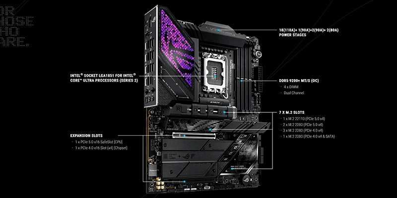 Mainboard này được tích hợp PCIe 5.0 cho khả năng mở rộng vượt trội, giúp bạn dễ dàng nâng cấp card đồ họa và các thiết bị lưu trữ tốc độ cao. Với bảy khe cắm M.2, ASUS ROG STRIX Z890-E GAMING WIFI đảm bảo dung lượng lưu trữ lớn và tốc độ truy xuất nhanh, lý tưởng cho các ứng dụng chuyên sâu đòi hỏi băng thông cao.