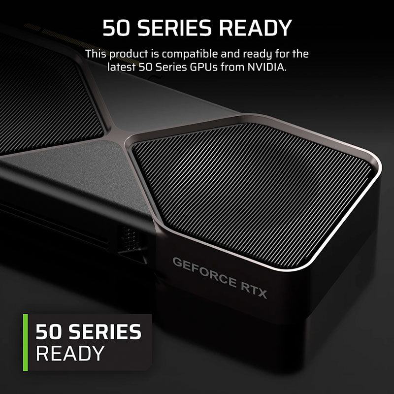 Nguồn được trang bị đầu nối PCIe 12V-2×6 (12+4 pin) có khả năng cung cấp điện lên tới 600W cho GPU thế hệ mới, đồng thời tương thích với các dây chuyển 8-pin PCIe truyền thống. Nhờ đó, Corsair HX1500i SHIFT dễ dàng hỗ trợ những dòng card đồ họa cao cấp như RTX 4080/4090, đồng thời duy trì độ ổn định và hiệu suất cấp điện tối ưu. Chuẩn ATX 3.1 đảm bảo khả năng đáp ứng dòng điện tức thời cao mà không bị sụt áp, phù hợp cho hệ thống gaming, render hoặc AI workload.