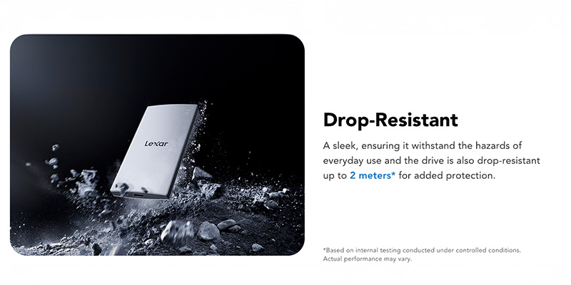 Khác biệt so với các dòng SSD thông thường, Lexar Portable ES3 được tích hợp hai lớp graphite tản nhiệt giúp hấp thụ và phân tán nhiệt nhanh, duy trì độ ổn định ngay cả khi xử lý các tác vụ nặng trong thời gian dài. Nhờ công nghệ tản nhiệt thụ động, ổ hoạt động êm ái, không phát ra tiếng ồn, phù hợp với không gian làm việc tĩnh lặng như văn phòng, phòng thu hoặc các buổi họp. Điều này không chỉ giúp kéo dài tuổi thọ của linh kiện bên trong mà còn đảm bảo dữ liệu được bảo vệ khỏi rủi ro hỏng hóc do quá nhiệt. Đặc biệt, ổ không cần quạt nên hoàn toàn không tiêu hao thêm năng lượng, phù hợp với các thiết bị di động như laptop và tablet.