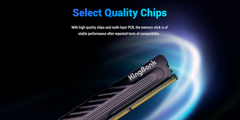 Kingbank KJIB sử dụng chuẩn kết nối 288-pin U-DIMM phổ biến nhất trên các dòng máy tính để bàn (PC). Thiết kế này giúp người dùng dễ dàng lắp đặt và tương thích tốt với hầu hết các bo mạch chủ hỗ trợ chuẩn DDR4 trên thị trường hiện nay. Đây là tiền đề vững chắc để bạn xây dựng một cấu hình máy tính ổn định hoặc dễ dàng nâng cấp lên dung lượng cao hơn trong tương lai.