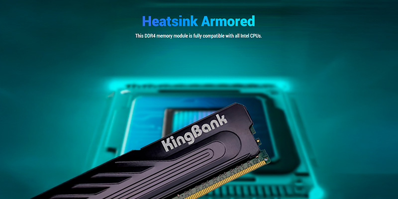 Được thiết kế chuyên biệt cho các cấu hình Intel, sản phẩm được trang bị lớp giáp tản nhiệt Heatsink (Intel heatsink) chắc chắn bao phủ các chip nhớ. Lớp tản nhiệt này đóng vai trò quan trọng trong việc giải tỏa nhiệt lượng phát sinh trong quá trình vận hành, giữ cho nhiệt độ linh kiện luôn ở mức an toàn, từ đó kéo dài tuổi thọ thiết bị và tăng tính thẩm mỹ cho không gian bên trong case máy tính.